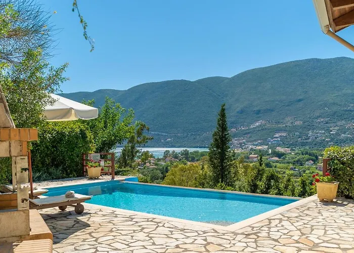 Die Unterkunft in Vasiliki und eine Terrasse bieten einen Blick aufs Meer. Die Villa in Vasiliki verfügt über ein Badezimmer mit einer getrennten Toilette und einer Dusche. Ein Haartrockner und Badelaken sorgen ebenfalls für Ihren Komfort.